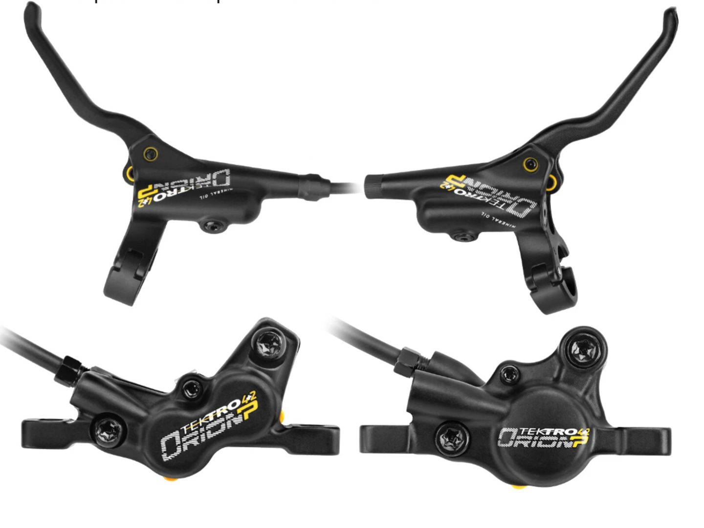 set kotoučových brzd přední 900 mm 4pístková + zadní 1700 mm 2pístková kompletní brzdy natlakované (br. páka + třmen + hadička) J-kit - naplněné brzdy, hadičky a třmeny - připraveno pro vedení rámem brzdy jsou rozpojené uchycení Post-Mount bez kotoučů a adaptérů barva černá hmotnost 698g /váženo/